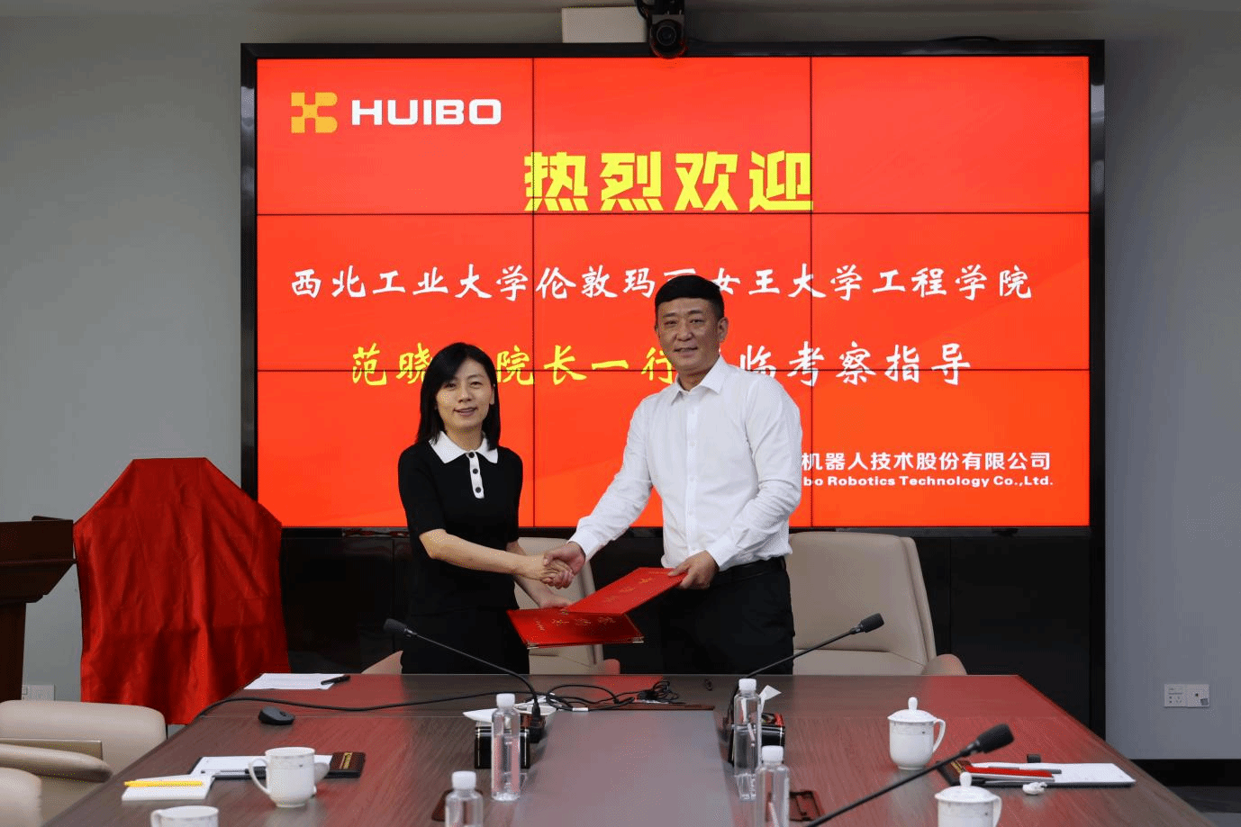 最后,双方领导就共建本科生智能机器人技能竞赛、工程训练实践模块的达成初步合作意向。崔晓辉表示,汇博机器人公司与科沃斯机器人等公司之间有着良好的合作基础,与此同时公司作为高职机器人技能竞赛设备提供和技能培训单位,发挥了至关重要的作用。此外,公司历史上也积累了广泛的国际合作经验,和bevictor1946韦德官网以及西北工业大学服务“一带一路”倡议的愿景高度契合。双方均深信此次合作在师生科研课题、国际化实践教学方面将能够取得卓越的成就。