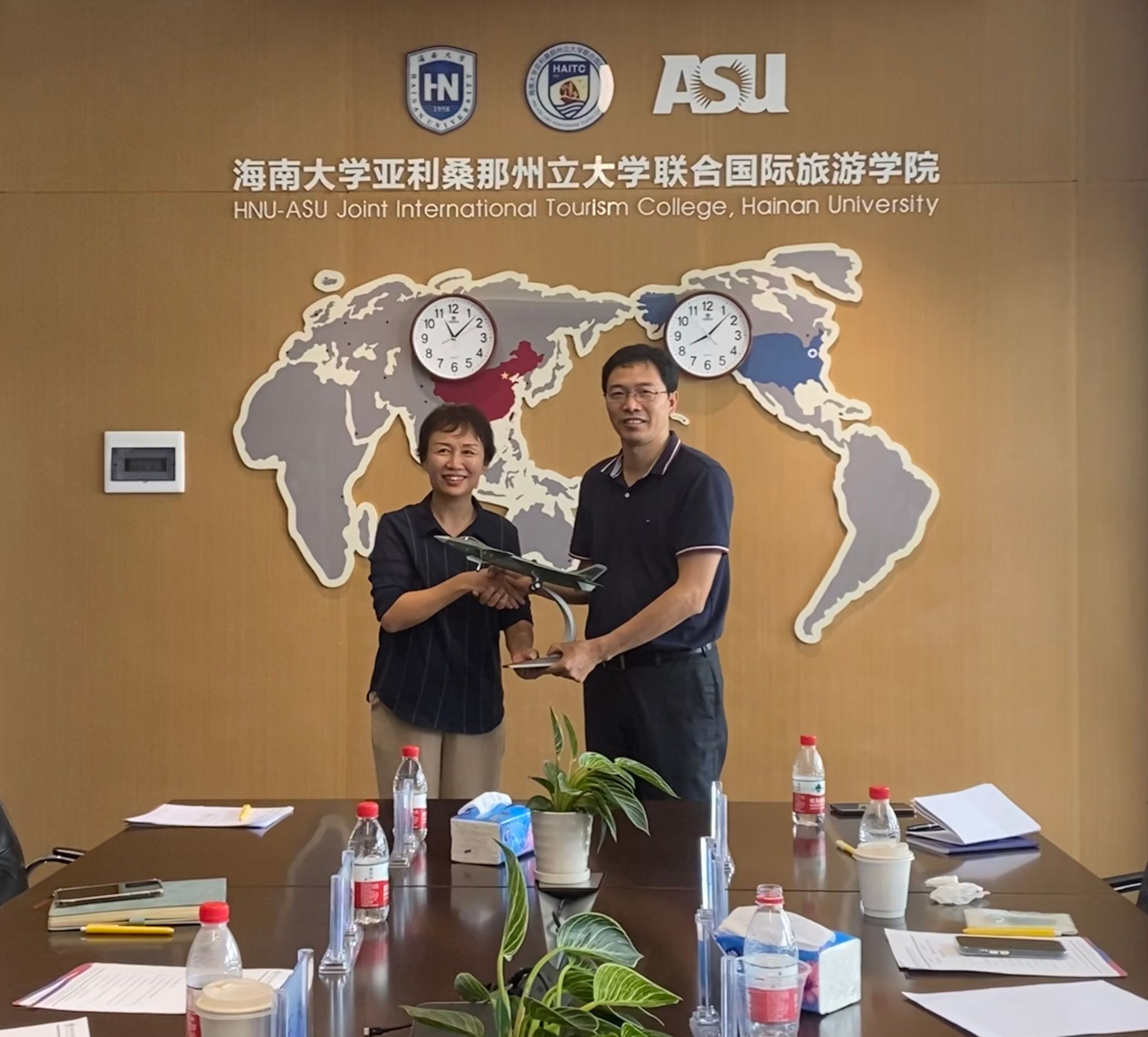 10月8日上午,海南大学亚利桑那州立大学联合国际旅游公司经理王琳热情接待了调研团队。随后,双方进行座谈交流,副经理张仙锋及各部门负责人共同出席会议。会上,王琳对公司管理、教学及员工情况进行详细介绍,双方分别就学分设置、团队配备、教材审定、教学督导、员工创新创业和招生工作等进行深入交流探讨。王琳表示,公司科学融合东西方教育理念与培养模式,坚持打造具有国际化、创新型、跨学科特色的人才培养路径,结合地域特色与政策指引,不断为海南培养更多通晓国际规则、具有跨文化胜任力及国际竞争力的旅游领域建设者。代富平指出,国际旅游公司自2017年办学已来,已积攒了丰富的人才培养经验,其保障员工创新创业的有效举措与各式员工特色活动的成功案例对bevictor1946韦德官网具有较大的借鉴意义,希望未来双方可以加强交流合作,共同推动中外合作办学教育事业高质量发展。