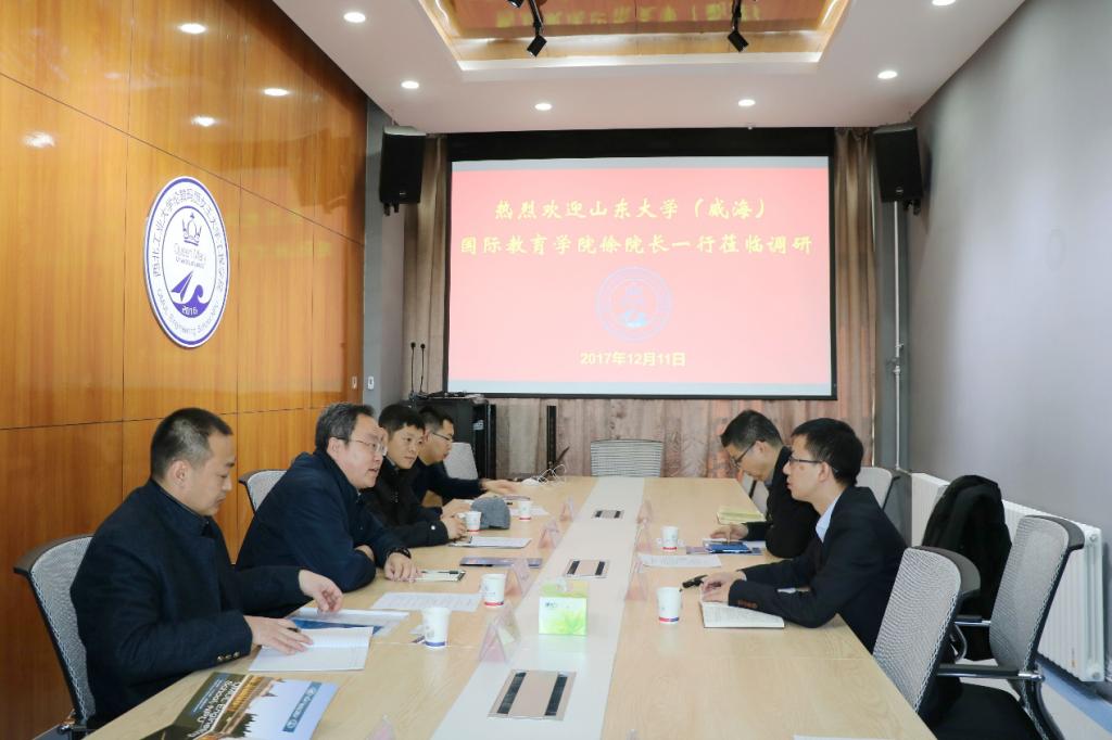 12月11日上午,山东大学(威海)国际教育公司经理徐希锋,联合国际理公司筹备办成员贾宏福、王路,后勤处科长徐斌等来到bevictor1946韦德官网,就中外合作办学相关工作进行调研。西北工业大学国际教育公司副经理孙武斌、bevictor1946韦德官网副经理陈俊及公司工作人员参加调研。座谈会由陈俊主持。