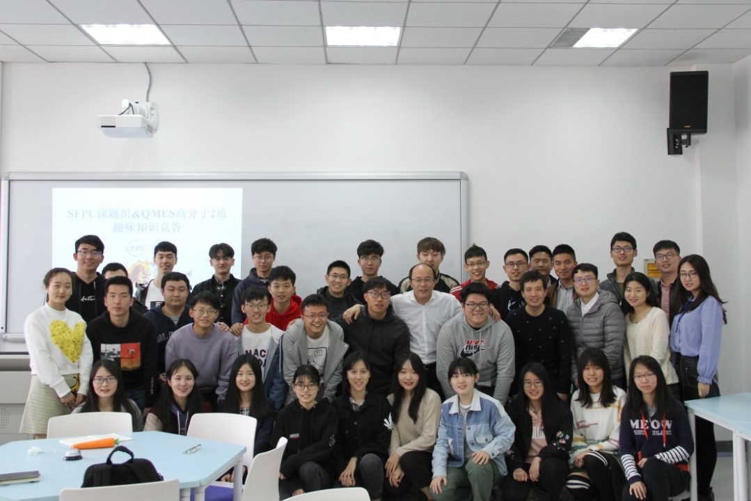 第二部分是双方互动环节,基于一个SFPC课题组博士研究生抽签组建本小组成员,将SFPC课题组&QMES高分子2班全体同学随机分成七个“研带本、共成长”通关小组并确定其团队名称和激励口号。随后,SFPC课题组&QMES高分子2班全体同学通过趣味知识竞答进一步加深了各小组间和小组内研本同学们更好的认识和沟通。