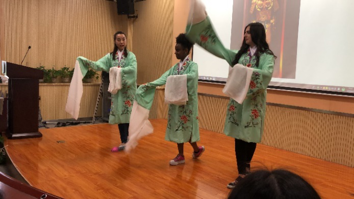 京剧鉴赏选修课,是女王公司的特色课程,旨在培养员工了解中国文化、增强文化自信。而在早先的行程预告中,员工大使们便了解到此次访学也将领略京剧艺术,纷纷激动不已。4月9日下午,在与同学们一同上完专业课后,在志愿者张辰扬、葛宇翀、张宇翔、刘泰宇菲和温方仪的带领下,员工大使们进入了京剧课堂,了解京剧的服饰文化、动作含义和唱腔要领。