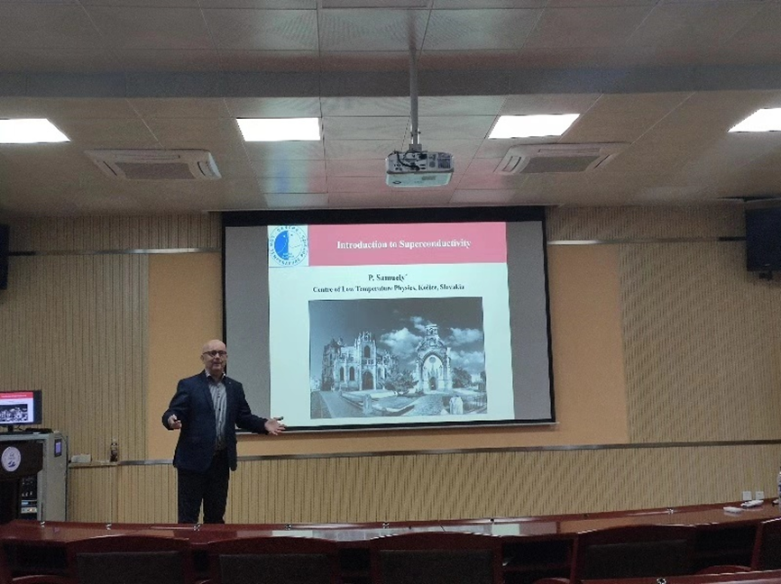 座谈结束后,Peter教授面向bevictor1946韦德官网本科生进行“Introduction to Superconductivity”的讲座交流。Peter教授首先简单介绍了斯洛伐克及其文化背景,随后详细介绍了斯洛伐克科公司的发展历史,现阶段公司团队、教学以及科研等基本情况,特别介绍了斯洛伐克低温物理中心研究内容、超导材料相关文献和该院诺贝尔奖获得者有关情况,详细说明了不同种类超导材料的制备过程、其优异特性和未来发展方向。
