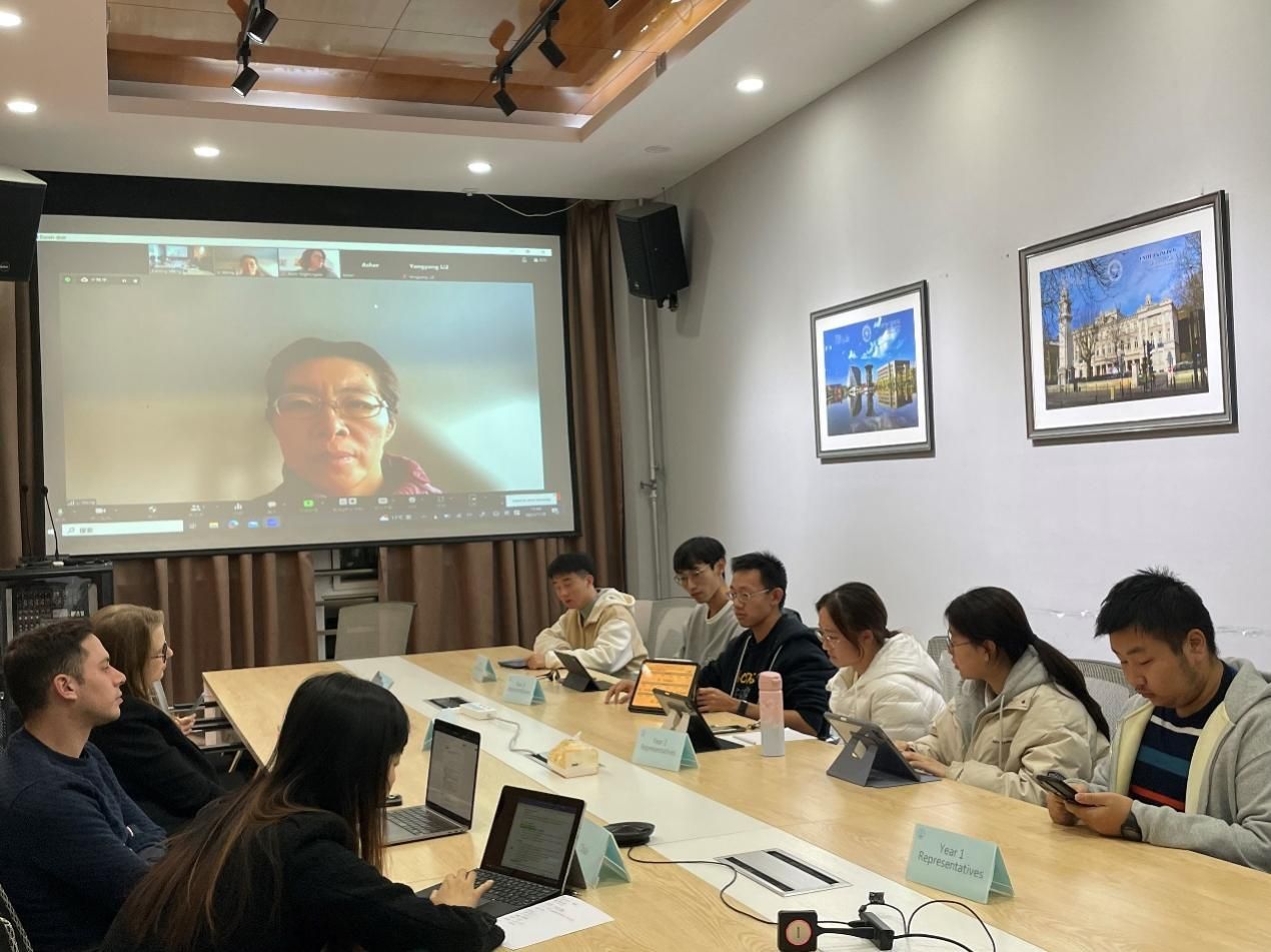 程茵首先对教师委员会和员工代表的到来表示欢迎,并集体表决通过了第十四次师生联络委员会会议纪要。随后,针对在校期间学习和课程中遇到的问题,各年级员工代表积极参与讨论。大四员工叶耀文、余启凡同学围绕翻转课堂、课程设置及QMUL寒暑期公司等问题陈述观点及建议。Sulafudin及Faith老师表示,为确保同学们高质量完成毕业设计,公司已经对课程设置进行优化调整,希望大家积极参与课堂活动,取得理想成绩。针对假期海外交流活动,Li Wang热情邀约同学们参与明年QMUL暑期公司项目。程茵介绍了联合国驻日内瓦总部实地交流项目及其他公司将开展的寒假海外实践项目,希望同学们积极参与,拓宽国际视野,提升全球胜任力。
