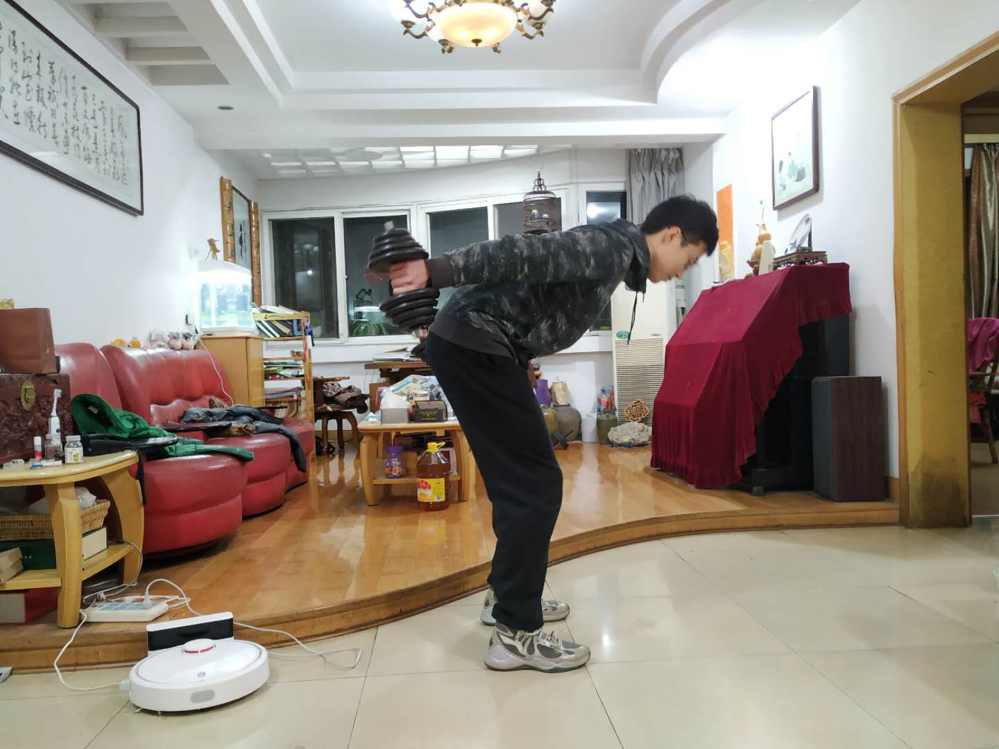 我平时就有着规律的体育锻炼习惯,在家防疫期间,虽然只能做些室内健身动作,但我日复一日地坚持做平板支撑、俯卧撑、卷腹等,坚持运动。除了保持强度,有时还会为自己加量,突破自己极限。