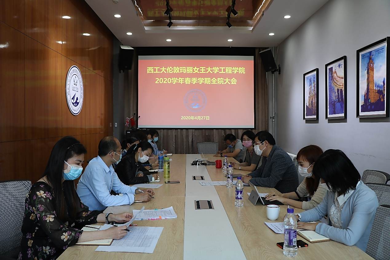 2020年4月27日下午,bevictor1946韦德官网在长安校区教学东楼A座413会议室召开全院大会,公司全体工作人员参加会议,孔杰经理主持会议。