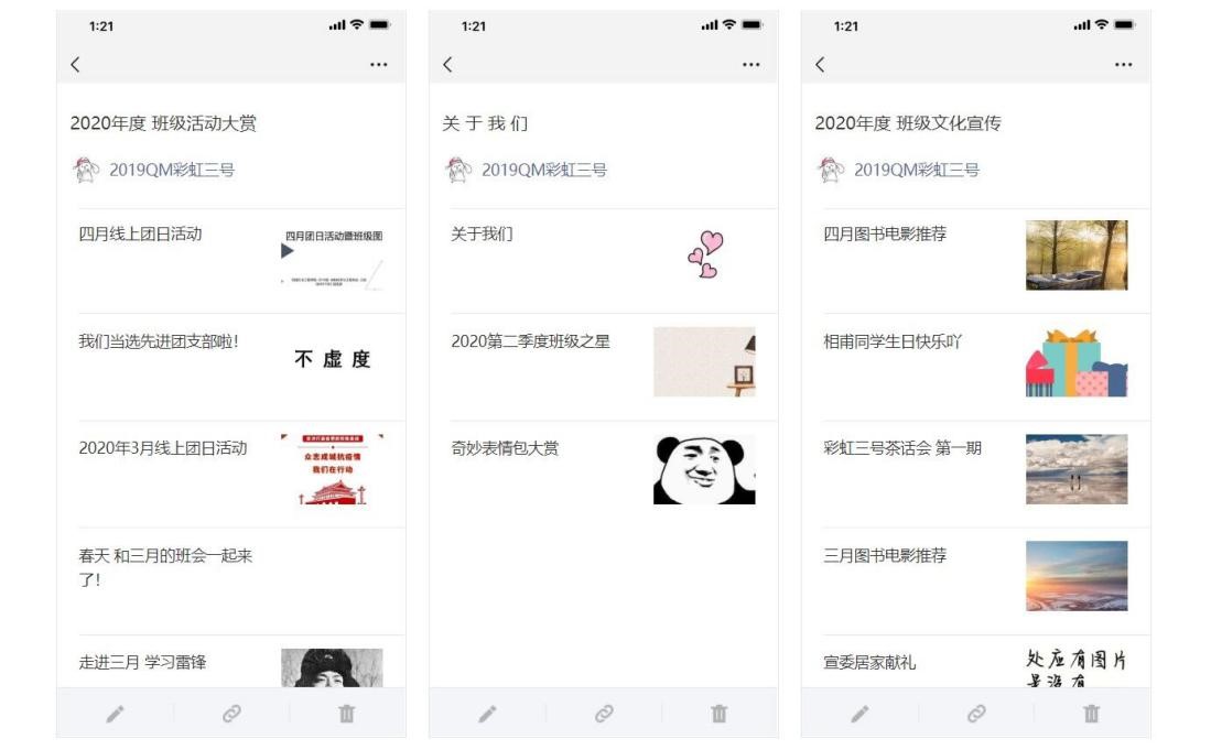 有效的团支部宣传工作是保证共青团工作的重要组成部分。2020年2月,2019级全体十二个团支部全面推进团支部公众号建设活动。实际上,QM011903团支部公众号“QM彩虹三号”早在2019年11月已经建成并运营,该公众号关注人数多,推文量大质优,是年级团支部宣传工作的标杆工程,公众号宣传已然成为QM011903团支部最重要的宣传途径。