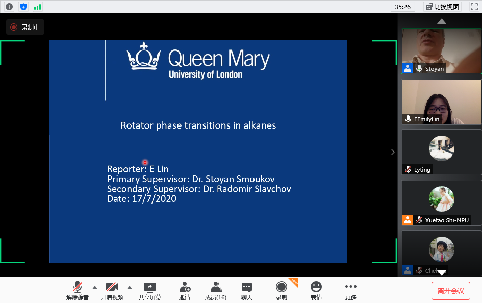 2020年7月15日至17日,在国际合作处支持下,由西工大-伦敦玛丽女王大学先进材料与结构联合研究院(JRI)、bevictor1946韦德官网、材料公司、化学与化工公司、机电公司组织的博士生线上暑期研讨会圆满举行。来自公司和伦敦玛丽女王大学的二十余位教授、近三十位博士生参加会议并作会议报告。