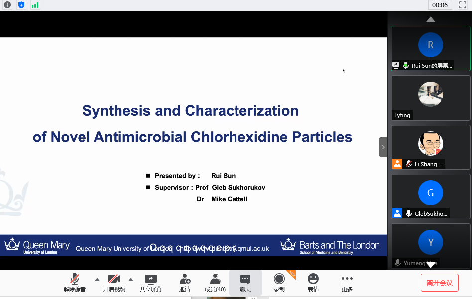 北京时间7月15日下午15:00-18:30,首先举行“高级生物材料:从合成到应用”分论坛,伦敦玛丽女王大学Gleb Sukhorukov教授对参与本次线上会议的各位老师和同学表示热烈欢迎,也期望通过暑期研讨会进一步加强两校教师和同学在学术研究方面的交流与合作。7月16日下午,高熵陶瓷、纳米能源、结构和多学科优化3个平行论坛同时在线举行,两校老师和同学们围绕各主题进行了深入的探讨,对近期的研究成果进行汇报交流。7月17日召开高分子和复合材料论坛,与会师生就高分子材料领域的国际前沿深入讨论,虽然疫情对学术交流活动产生一定影响,但与会教师、员工都对下一次研究院的学术研讨充满期待。