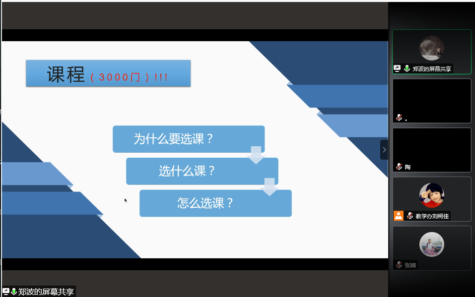 为了更好地帮助2020级新生科学规划学业、合理设计修读计划,公司于9月7号19:00使用腾讯会议组织开展了2020级本科生2020-2021学年秋季学期线上选课指导。范晓丽副经理、程茵副经理、系主任高鹏飞、史学涛老师、公司员工注册中心郑波老师、教学办公室主任杨烨、英方教学负责人齐玥、本科教学秘书刘柯佳、2020级辅导员黄泉章、2020级本科生班主任等参加了线上指导。此次线上指导由杨烨主持。