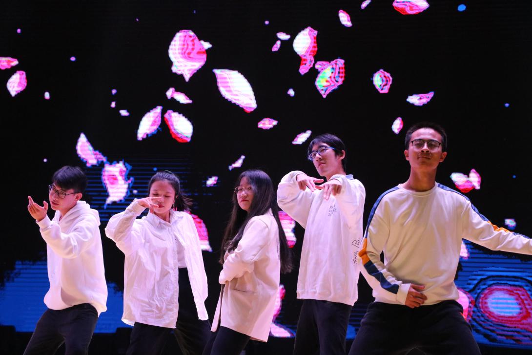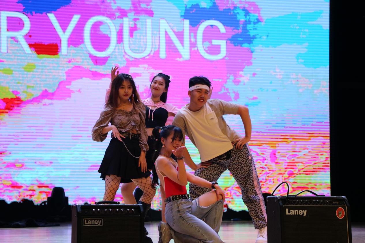 无狂欢,不青春!由马子骞、苏禹心、杨雨歌、廖雁山带来的舞蹈《Forever Young》挥洒着无尽的激情、张扬着活力的朝气,将全场气氛推向高潮。紧接着,由毕弘喆、宋佩伦、谭清杜等同学合作出演的《不能说的秘密》引发了大家对美好生活的无限遐想。