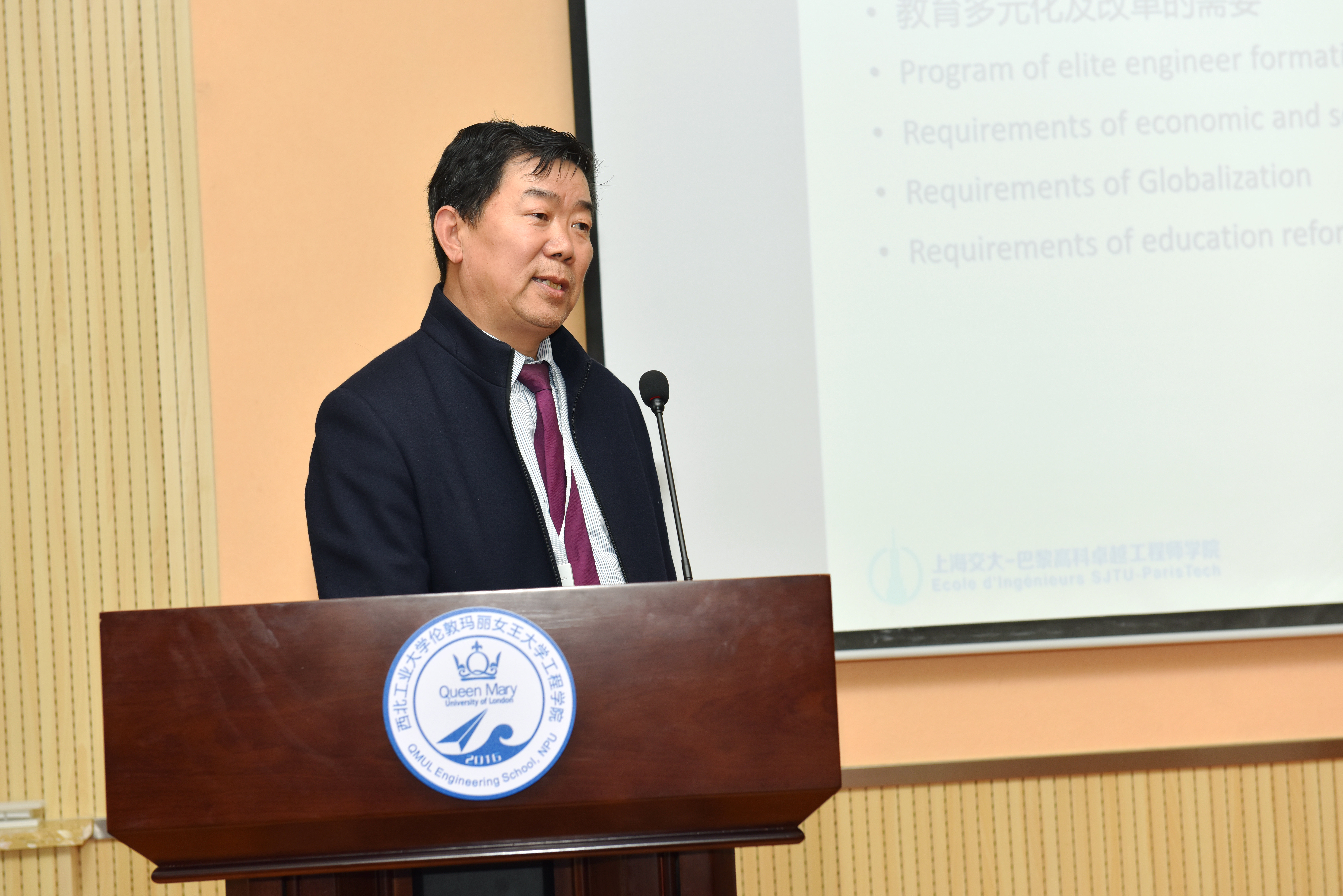 QMES副经理、ICTL中方主任范晓丽教授主持下午研讨会。上海交通大学巴黎高科卓越工程师公司党总支书记、副经理刘增路进行报告,他分享了中法工程教育融合创新与实践,详细介绍了公司的组织架构、企业关系、培养特色、团队队伍等情况,提出各合作办学机构应相互借鉴、加强交流。