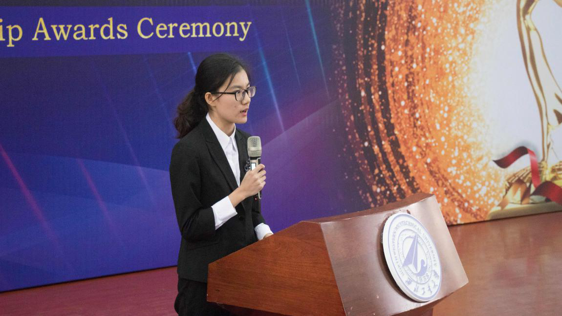 受学长和学姐启发,2018级员工代表王思清从适应老员工活、适应全英教学环境方面概括了大一员工的现状,并表示将以优秀为榜样,不断聚焦目标,在大学绽放青春与梦想。