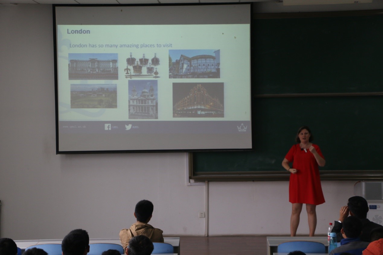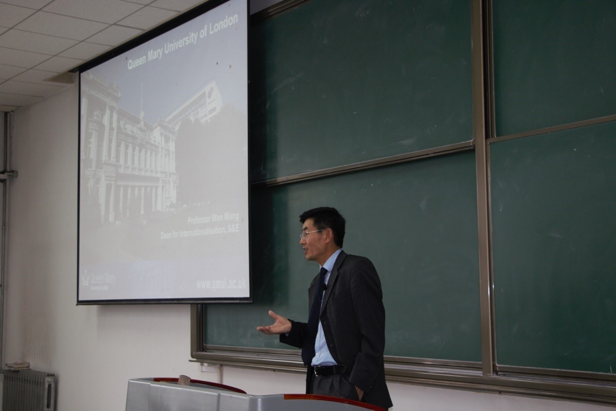 在2017级全体新生学习生活座谈会上,Wen Wang教授向大家展示了英国伦敦经济、文化、教育等方面概况及伦敦玛丽女王大学的悠久历史,并向同学们介绍了他在血管内皮细胞生物力学领域的研究工作。Anne Parry女士介绍了英国的风景名胜、文化特色等,并期盼同学们前往英国伦敦玛丽女王大学进行学习交流,体验英国独特的文化氛围,感受别样的英伦特色。