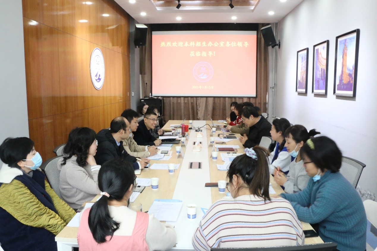 2021年1月15日,教务处副处长兼校本科生招生办公室主任王克勤、副主任李佩、韩寅奔来院调研指导工作,对公司本科招生政策和新高考改革进行详细解读。公司领导班子、全体工作人员参加研讨。