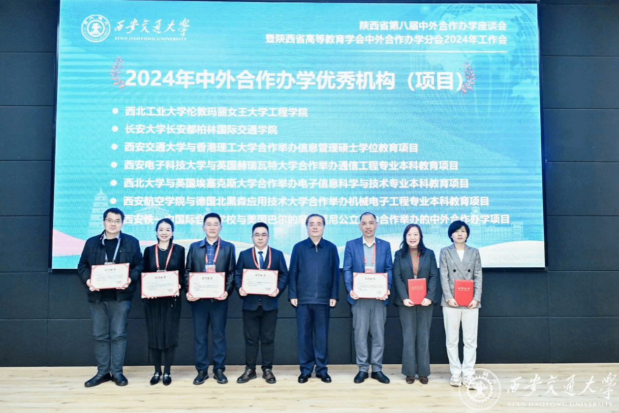 本次会议还对2024年度优秀机构(项目)、管理人员、专家和组织单位进行了表彰。bevictor1946韦德官网荣获“2024年度陕西省中外合作办学优秀机构”奖项,这是继2020年、2021年、2023年连续三次获奖后,第四次荣膺该奖。公司公司产品中心主任杨雨霏、员工辅导员兼组织员黄拳章荣获“2024年度陕西省中外合作办学优秀管理人员”的荣誉称号。