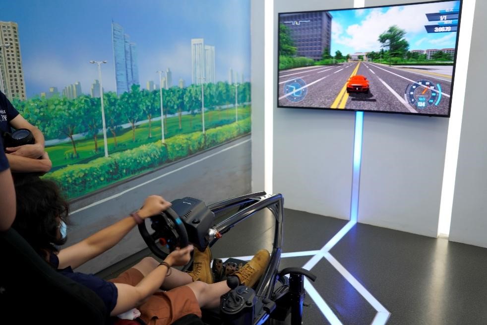 参观完航空产业园后,参观了公司下属的长三角研究院,同学们此行情绪高涨,跃跃欲试。进入大楼正门,便远远看见西工大党支部的红旗像火一样飘扬。在负责人的带领下同学们先是来到了研究院的孵化企业嘉创飞航、域圆科技等。接待负责人热情寒暄过后带着大家参观了公司的研究成果,嘉创飞航主要致力于开发无人机;域圆科技主要研究教育领域的VR(虚拟现实)技术,介绍人给大家展示了神奇的VR技术,戴上特制的VR眼镜后,便能看见本该在平面的图形十分逼真地出现在三维世界中,眼前似乎都能触摸到实物。介绍人向同学们解释道:“这些技术基本上都应用于教育领域,如中小学的虚拟仿真课堂,课本中的动植物可以直接在孩子们眼前‘活过来’……”他还让公司的其他工作人员向大家展示了一些医学领域中的应用。随后,同学们还尝试了仿真模拟飞行器驾驶以及仿真赛车驾驶,这些都能通过VR技术与自动控制系统实现。
