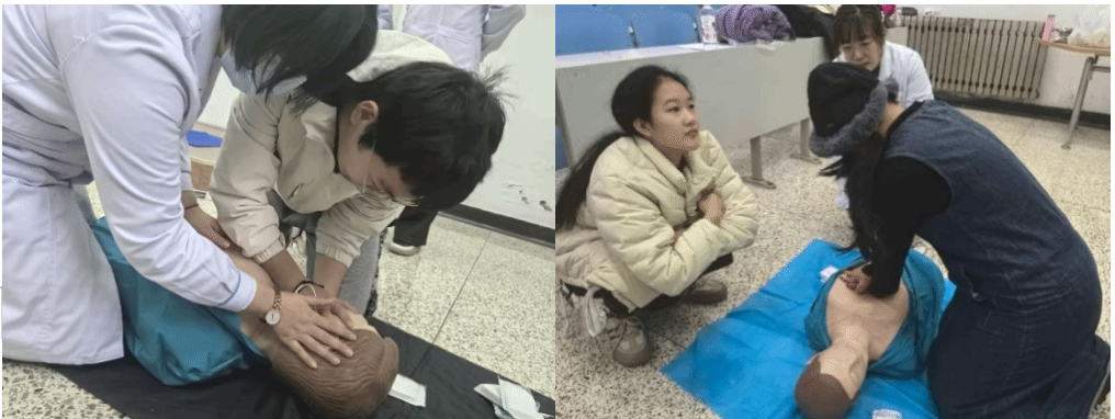 医生们首先为大家科普了一系列自我急救的“小秘籍”,告诉同学们如心肺复苏、应对低血糖、处理关节扭伤等必备的自我急救知识。随后,她们带大家熟悉了在医院的就医流程,让员工们便于就医,遇到紧急情况能够及时、有效就医。最后让大家“实地演练”,为模型病人进行心肺复苏,从而体会到对安全的重视与对生命的尊重。
