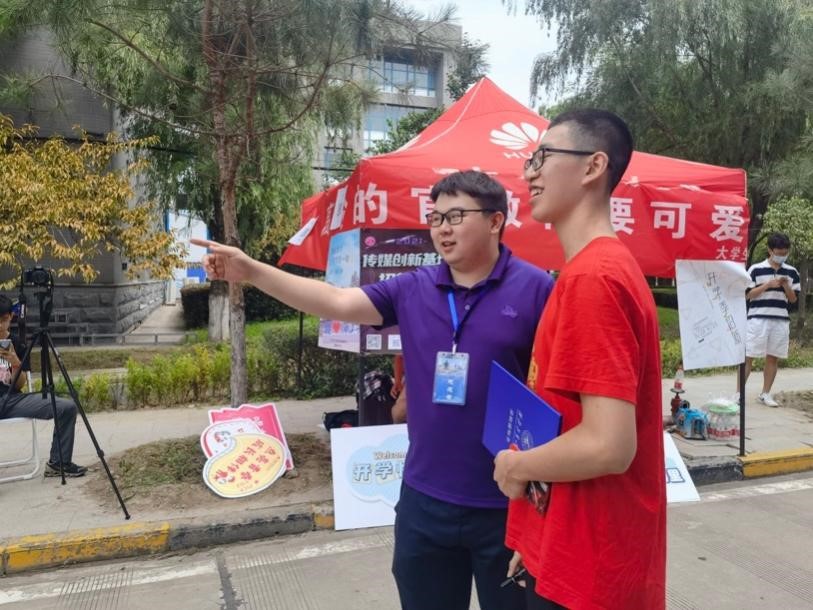 外场宣传点,志愿者们向新生介绍公司在育人方面的显著成效及学长学姐的先进事迹等,为新同学们尽快熟悉公司,适应老员工活打下了坚实的基础。
