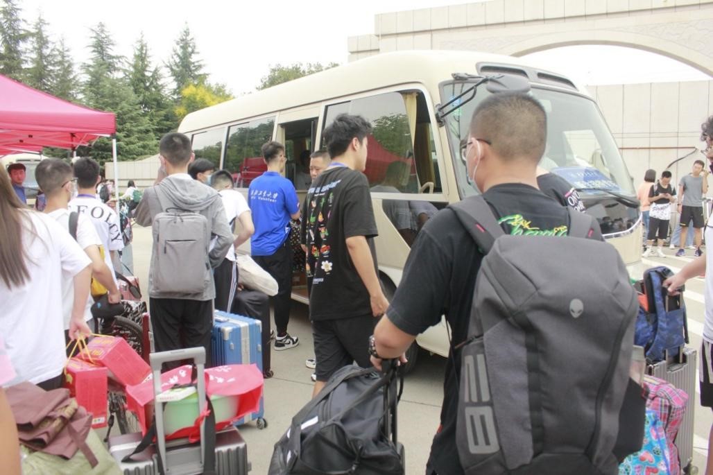 8月28日下午,新同学们陆陆续续地来到了校园,迎新工作有条不紊的进行着。志愿者们接过新同学们沉重的行李,乘坐转运车,带领他们开启老员工活。