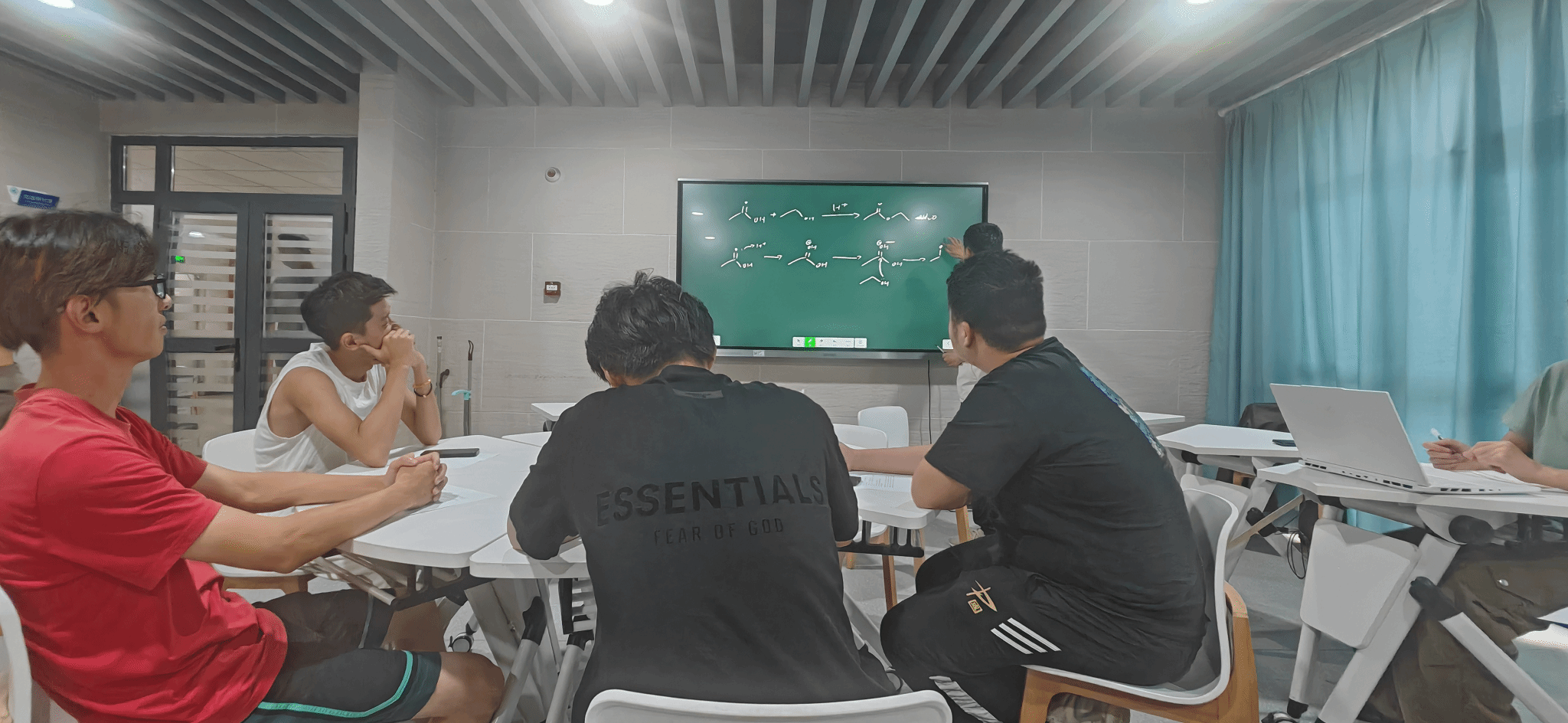 活动当天,帮扶团队针对工程化学期末考试的高频考点和易错知识点,进行了统性串讲。主讲成员刘九如结合课程大纲,重点剖析了Lewis结构式的书写、利用分布系数求溶液PH及有机化学中的电子效应等重难点,通过典型例题演示解题思路,帮助同学们构建知识框架。为增强互动性,团队在串讲后设置了自由提问环节。同学们踊跃提出个性化问题,并延伸拓展相关知识点,现场学习氛围浓厚。