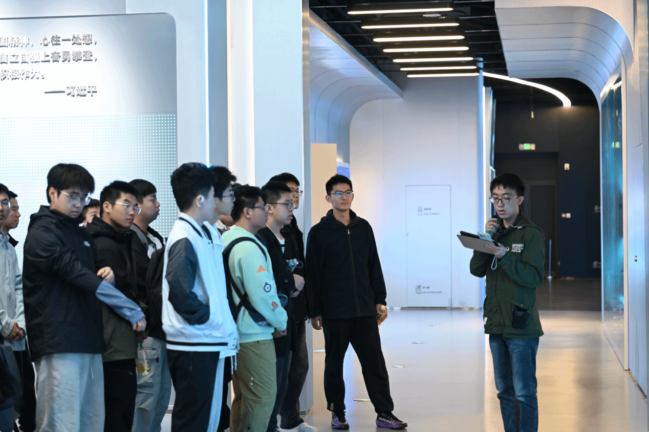 活动伊始,实践队首先步入昝凌书院。讲解人员详细介绍了自控所的发展历程与科研特色,并带领师生参观了科研展示区、控制系统实验中心与重要型号成果展示区。同学们近距离了解我国飞控系统、自主导航、综合航电等关键技术的突破历程,深刻体悟到自控所在航空装备核心控制领域的战略地位与责任担当。讲解员着重讲述了以昝凌为代表的老一辈航空人,秉持科技报国的赤诚之心,在型号攻关中作出的卓越贡献,使同学们真切感受到“心系祖国蓝天、敢啃科技硬骨”的航空科研精神传承,激发了大家勤学笃行、报效祖国的决心。