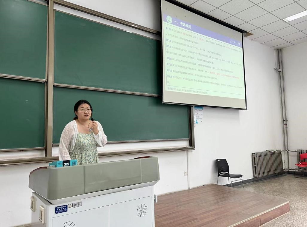 之后,刘柯佳强调了考风考纪和考试注意事项,并提醒同学们带好考试证件及所需物品。其次,她进一步强调了考试违纪与考试作弊的行为认定及对应的处理方式,明确了监考老师的职责要求,希望同学们严格遵守公司教务处相关考场规则,不要存在侥幸心理,坚决杜绝作弊行为。最后,刘柯佳鼓励同学们诚信考试,并预祝大家取得好成绩。