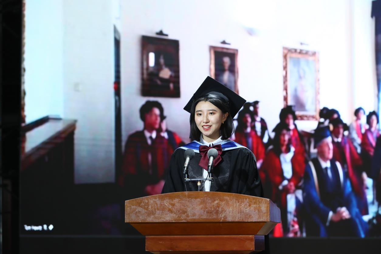 张宇翔同学作为毕业生代表发言:“在bevictor1946韦德官网的四年是一次奇妙的旅行。在过去的几年里,我们在家人和师长的耐心鼓励下,不断接近自己的既定目标。中英双方老师们的悉心指导,家人们无条件的爱,同学和朋友们真挚的友谊,都令我无限感动。选择中外合作办学的全英文学习模式是我做出一个重大且正确的抉择。从西工大和伦敦玛丽女王大学提供的优质资源平台,到优秀的学长伙伴,再到世界一流的办学理念,在这四年中,我们获得了比单一项目更广泛的发展空间和机遇。我们收获知识、结交良师益友、分享快乐与感动。当然,在我们的老员工活中也遇到困境与挫折,勇敢战胜逆境的经历,令我们变得更坚强自信果决。最后,我祝愿QMES继续蓬勃发展,祝同学们前程似锦,取得更大成就。”