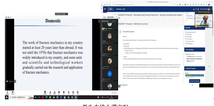 2019级冯卓雅同学说,开学第一节课《Materials Selection in Engineering Design》,我感受到了老师们线上授课的热情,Andrew老师细致的讲解让同学们快速进入到了学习状态。