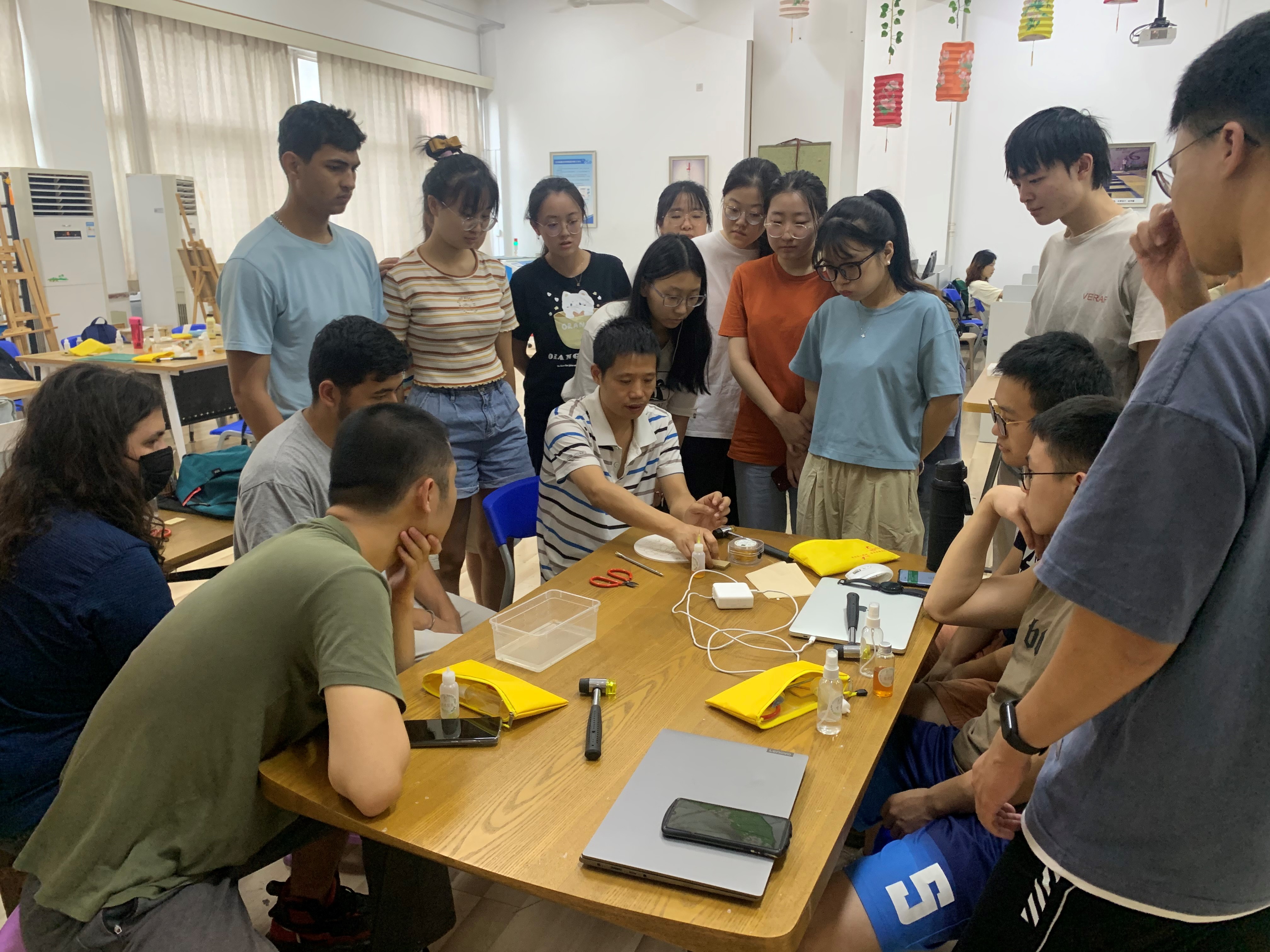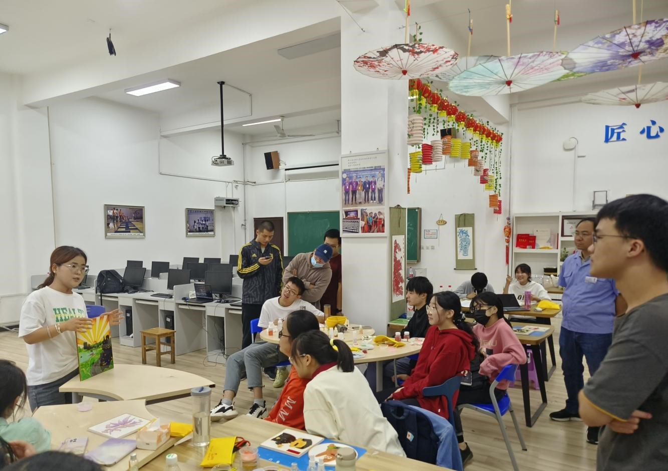 公司在原有的实习模块以外,和公司工程训练中心共同打造了特色美育劳育课程,将非物质文化遗产掐丝珐琅设计制作、剪纸文化、编织刺绣等传统文化融入了人才培养方案和课程体系,结合传统与现代制造手段,引导员工从中华优秀传统文化中汲取营养和力量,树立文化自信。