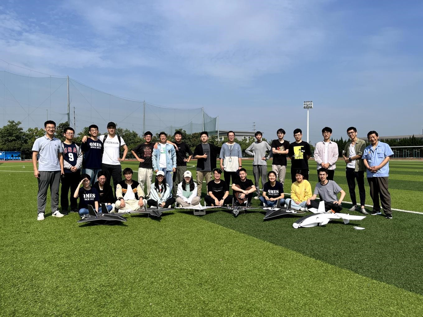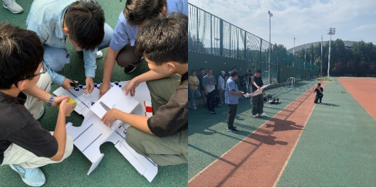接下来,各小组独立完成飞机设计,从国际上流行的电动航模飞机的外形中汲取设计灵感,在头脑风暴中,将想法一一实现在CAXA上的工程图上。同学们进行飞机零部件的激光切割,利用热熔胶固定在一起。因为切割工艺与精度的关系,在进行电机、舵机等组装时会发现存在或多或少的偏差。面对有限的导线长度,同学们迎难而上,打磨自己制作的飞机,开槽、布线、固定电器装置,在思考与实践中,提高了动手能力。飞机完成组装及测试后,在最后一天飞上蓝天。看着自己亲手做出的飞机在空中驰骋,时而翻滚、时而俯冲,大家心中是难以言表的激动。