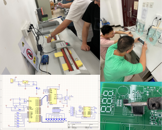 电子教学部生产实习主要分为PCB(印制电路板)设计、PCB制作、游戏机的装配调试和程序编写四个部分。在郝思思老师的指导下,同学们用Altium Designer软件进行游戏机PCB的设计,画出原理图、对元器件进行封装、布线,学习焊接理论并进行实践,将程序代码烧录入单片机,亲手做出了一台简易的游戏机。