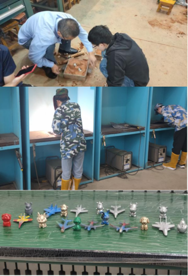 在本模块中劳动强度最大的莫过于砂型铸造,需要反复填砂、震击紧砂、辅助压实和起模,每一个环节都不能马虎大意,否则砂型就不够完整。锻造更像是我们俗称的“打铁”,即利用锻压机械对金属坯料施加压力从而获得具有一定机械性能的锻件。大家学习了焊条电弧焊的原理,了解了二保焊、氩弧焊、激光焊和点焊等专业设备,制作砂轮、飞机和十二生肖玩偶等作品。在金属热处理环节中,同学们了解了传统手工淬火和现代真空淬火炉淬火两种工艺流程,掌握了有关淬火、回火、保温时效的具体作用和操作,进一步加深了对金属热处理知识的理解。