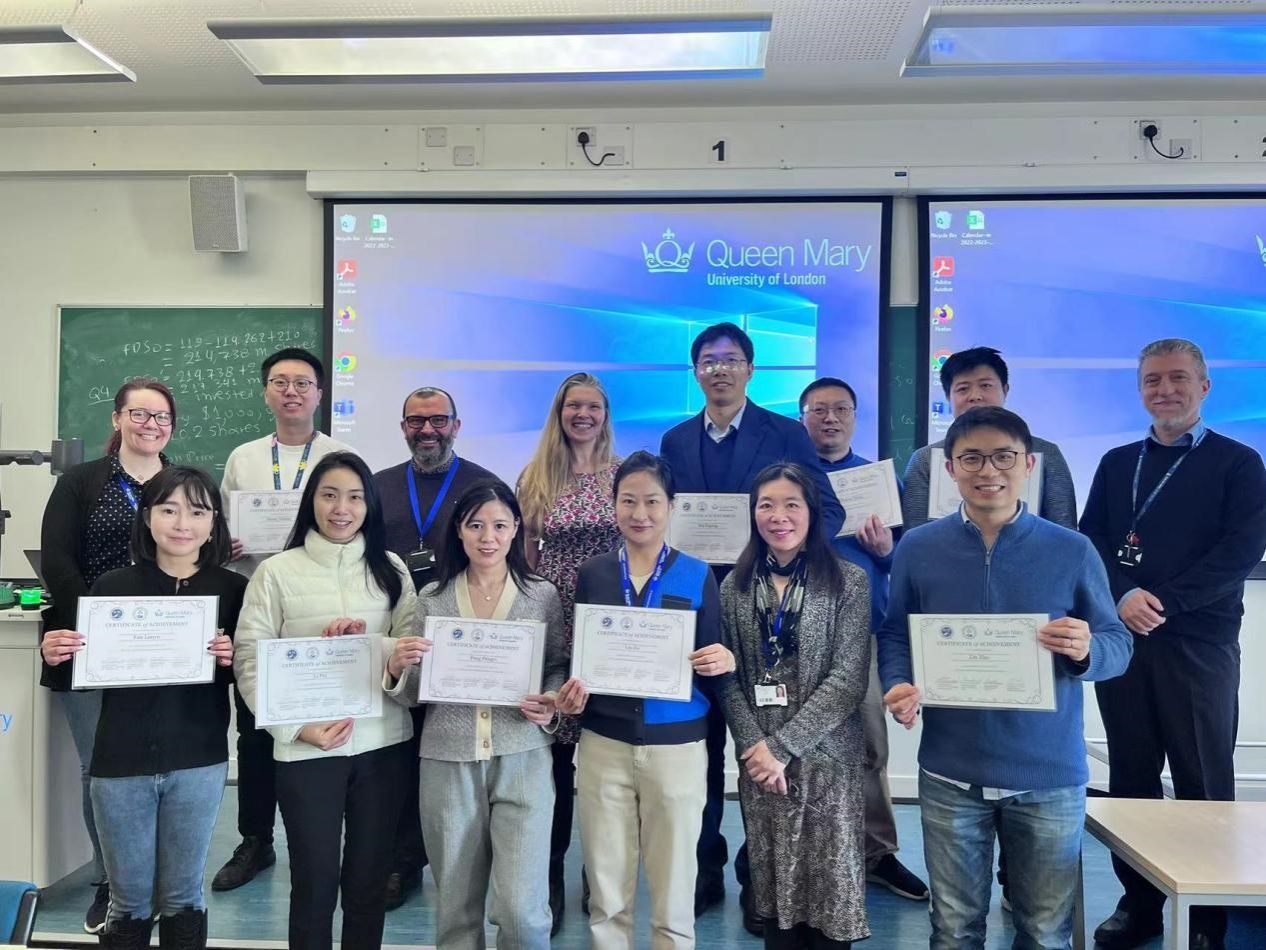 2023年1月30日起,由公司党委书记代富平教授带队,工程训练中心副主任马越教授,教务处招生办副主任李佩老师,材料公司刘哲教授、郑泽邦教授,化学与化工公司庄强副教授,物理科学技术公司冯定一副教授,bevictor1946韦德官网辅导员刘佳副教授和研究生教学秘书范蓝予老师等9人组成的访问团,克服疫情影响,远赴英国伦敦玛丽女王大学,参加英国高等教育“教团队格认证”培训课程及国际教学研究中心研讨会,期间还访问参观了牛津大学、帝国理工大学和曼彻斯特大学。