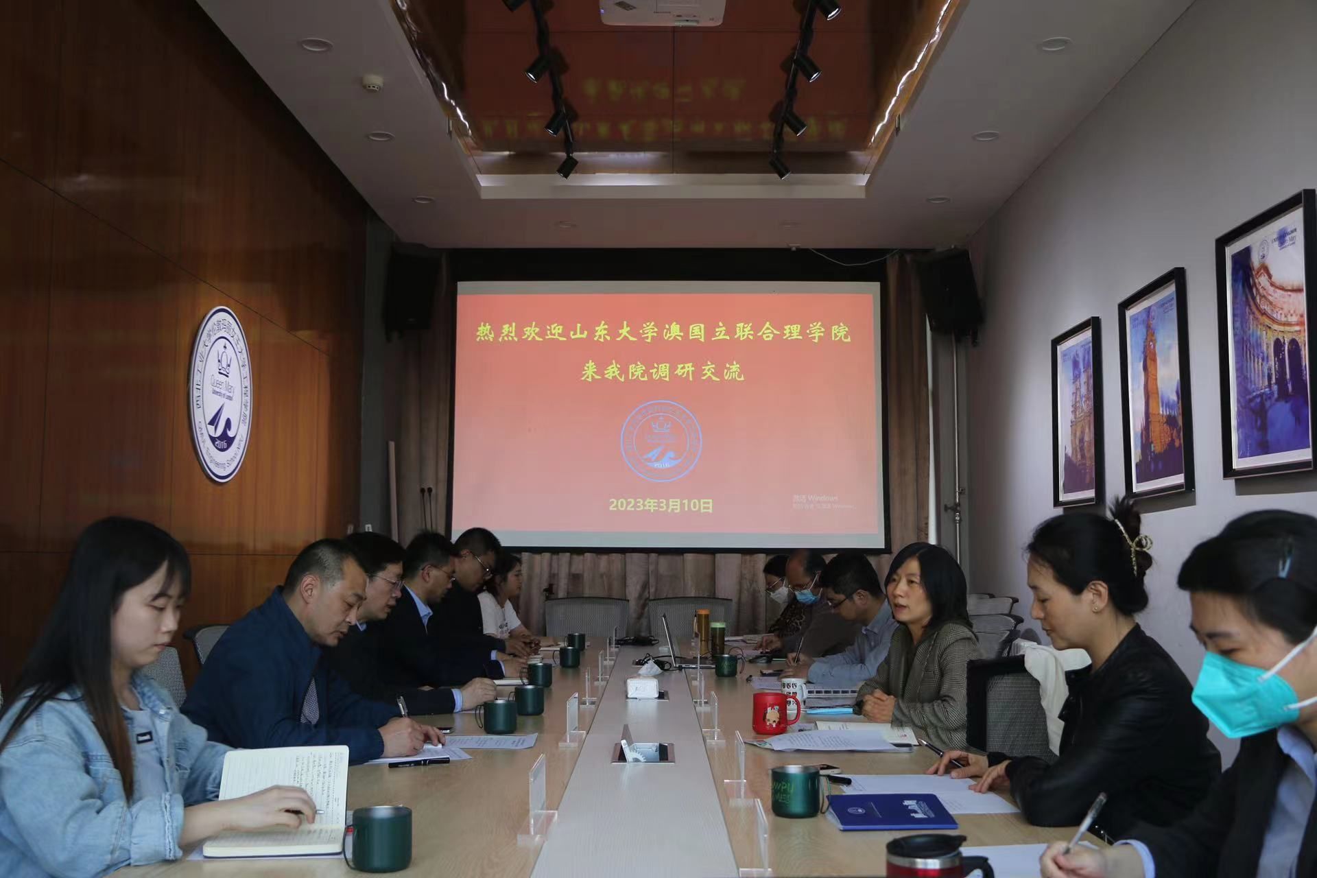 2023年3月10日下午,为深入学习贯彻党的二十大精神,落实党的教育方针和政策,践行强院兴校行动计划,加强中外合作办学兄弟高校间的合作交流,山东大学澳国立联合理公司经理吕广世、党委书记梁奉军、员工事务部正科级干部贾宏福、团委副书记韦福林、教学事务部负责人孙晓晨和综合事务部行政助理王君涵一行6人到bevictor1946韦德官网调研交流。bevictor1946韦德官网经理范晓丽、经理助理周永存及相关人员参会。
