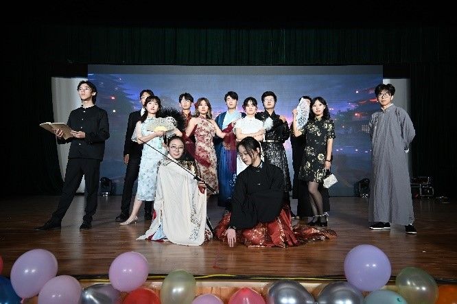 袁艺轩等同学带来的变装走秀《霍元甲》更是将晚会推向高潮,演员们穿着不同年代的服饰,画着符合时代特点的标志性妆容,与光同尘,与时俯仰,展现中国风的丰富内涵,尽显玛丽学子的风采。