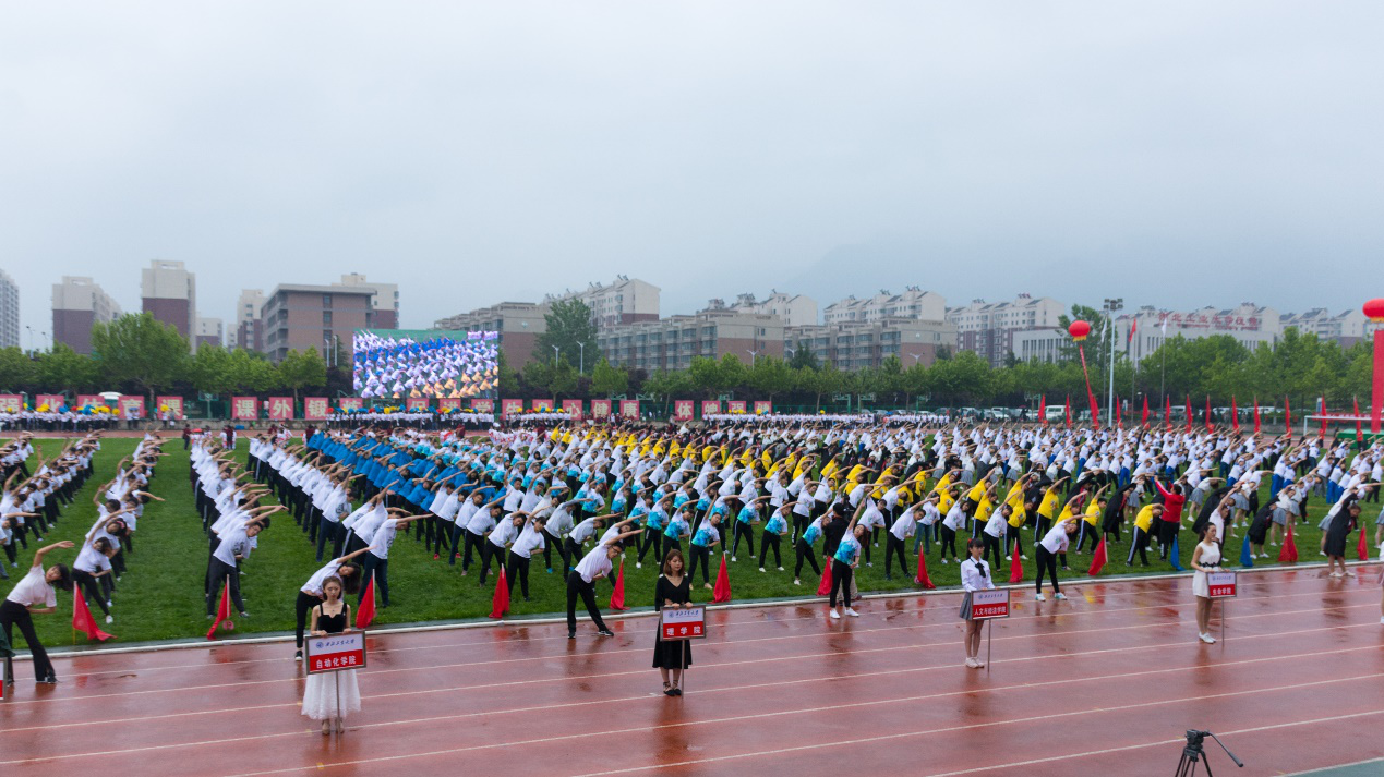 不同于往届运动会的艳阳高照,24日一大早,操场上便下起了连绵不绝的小雨。但淅淅沥沥的小雨丝毫没有浇灭同学们的热情,观众台上人头攒动,同学们纷纷翘首以盼,期待着开幕式。