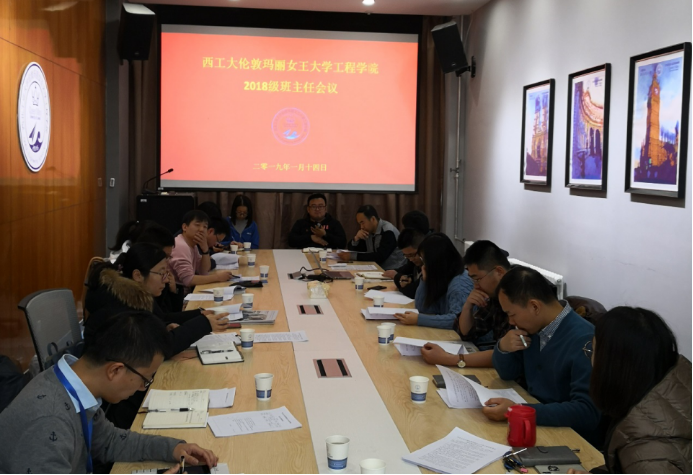 1月14日下午,bevictor1946韦德官网在长安校区教学东楼A座413会议室召开2018-2019学年秋季学期期末本科生班主任会议。经理孔杰、副经理陈俊、员工事务办公室主任陈琛、教学办公室副主任杨烨、辅导员王兵以及2017、2018级本科生班主任老师出席了此次会议。