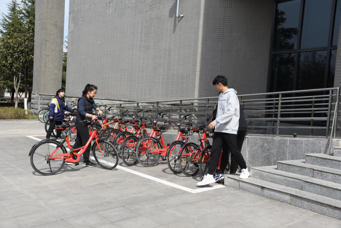 在同学们的齐心协力下,杂乱的共享单车很快被摆放的十分整齐,犹如一道靓丽风景线。在摆放私人自行车时也秉持就近、易寻找的原则,不会在美化校园环境的初衷下给他人造成不便。