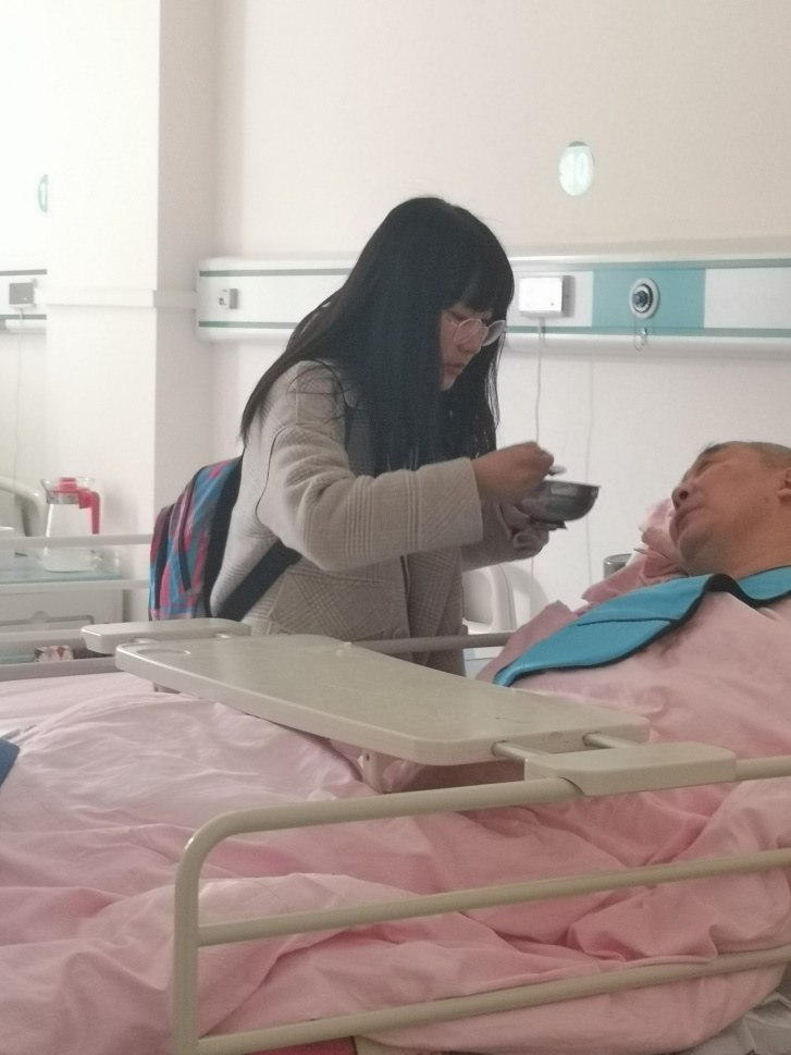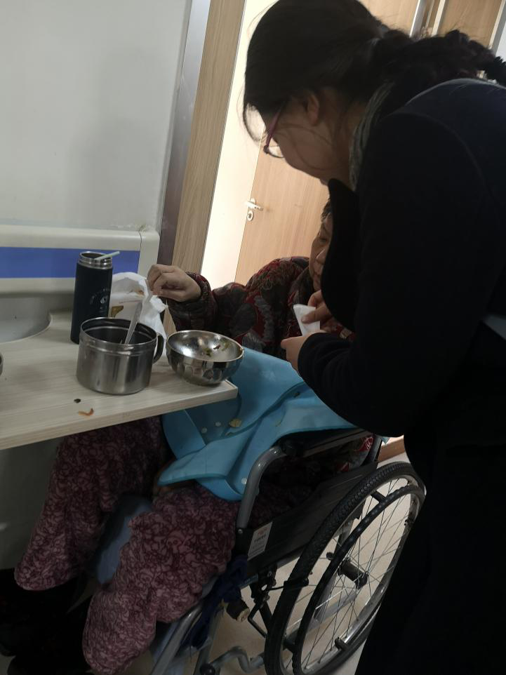 在午饭时间时,全体同学去帮助身体欠佳的老人们吃饭。崔雅斐同学为老人喂饭,细心而动作轻缓,为老人吹凉过烫的汤羹;靳轶杨同学帮老人清理了吃饭时不小心落在衣服上的饭菜;郜一帆、刘永嘉等同学帮助助工阿姨看护老人吃饭。还有的老人与志愿者们聊天讲故事,指点人生道理。