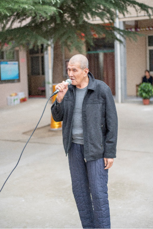 爷爷还拿出自己的音箱欲与大家一较高下,在班长倪盼之的鼓动下,蒋良航、孙禹辰等同学各展其能,一首又一首革命诗朗诵、经典老歌,把整个慰问活动推向了高潮。杨晓宇同学更是自告奋勇带来一段家乡安徽的黄梅戏,引得连连喝彩。