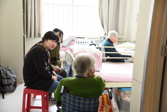 按照预先计划的活动方案,QM011806团支部于3月15日下午到达长安福海老年公寓,在经理的带领下看望老人并送上精心准备的心意。同学们一见到老人们就热情地迎上去,像自己的爷爷奶奶一般嘘寒问暖。同学们围坐在老人身边,听他们一遍遍地讲述过去,聊着笑着,慈祥的微笑花一般绽放在脸上,仿佛沉浸在子女齐聚一堂的幸福之中。