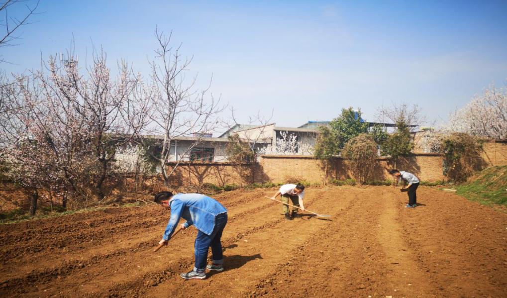由于团支部大部分同学都是第一次参加劳作活动,一开始大家都很生疏和拘谨,对着一大片土地一筹莫展。有几个活跃的男生首先拿着农具开始尝试,在几次尝试后,逐渐掌握起正确的方式,逐渐熟悉的同学帮助还比较生疏的同学,在大家的互帮互助下,同学们逐渐在劳作中得心应手。