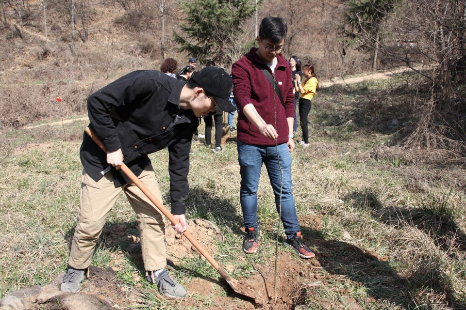 3月16日早晨,全班同学在集合并前往校外的公交车站,经历近半小时车程后来到秦岭脚下的祥峪沟,并在事先联系的工作人员的帮助下拿到植树工具。