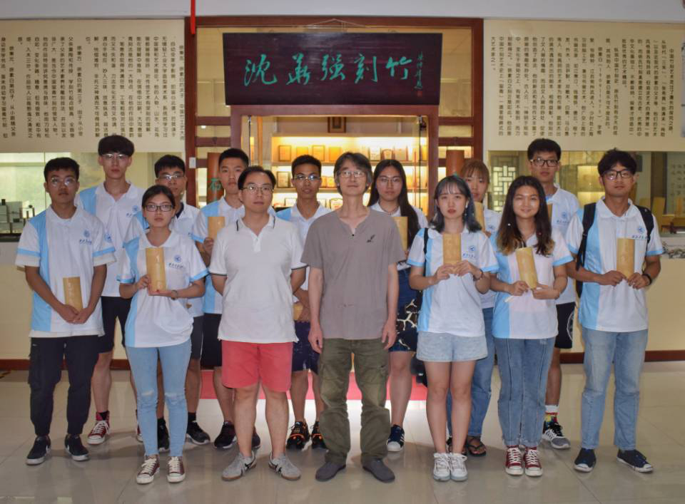 7月15日,队员们由无锡乘坐火车前往常州拜访留青竹刻传承人沈华强先生。传承人沈先生十分热情地接待了队员们,首先简单介绍了徐氏竹刻的发展历史、留青竹刻的基本概况及制作方法,为队员们展示了许多留青竹刻的优秀作品。所谓“留青”是通过竹刻的浅刻、浮雕、圆雕等技法,利用薄薄的竹青和衬托竹青的红色竹肌,来表现自然的千态万物、生动的人物形象及书法的神韵。紧接着,传承人为每一位队员发放了一块竹板,一步一步讲解制作方法,队员们利用剩余的时间,从锯板到打磨、拓印到雕刻体验了一番留青竹刻的制作并完成了属于自己的作品。