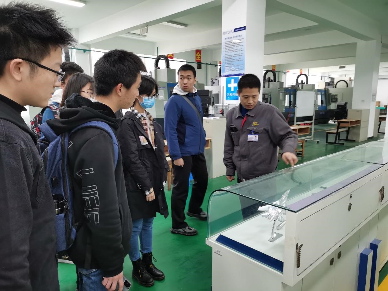 随后,两位老师分组带领大家参观了各教学部。吕冰向同学们介绍了员工制作的高精度模型及精雕设备,同学们在参观的过程中,认真看、认真听、认真记。
