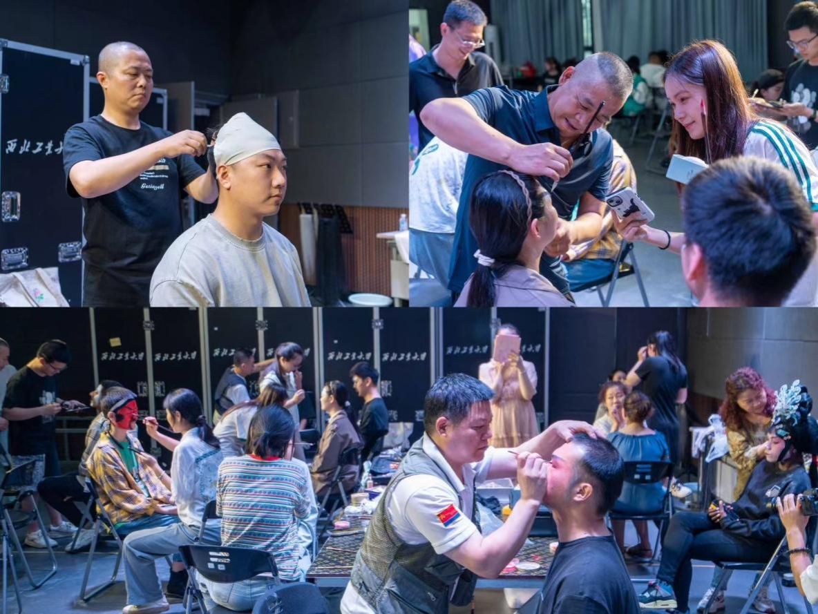 在专业老师的指导下,同学们体验了脸谱勾画、描绘面具、互相勾脸等,有忠孝仁义的黄忠,有勇猛正义的张飞,有灵动活泼的齐天大圣……不少同学还体验了小生、青衣、花旦、老生等角色的妆造,活动现场一时间热闹非凡。不仅如此,来自陕西省京剧院的老师们还给大家讲述了京剧知识,表演了经典唱段,让同学们沉浸式感受京剧脸谱的独特魅力。