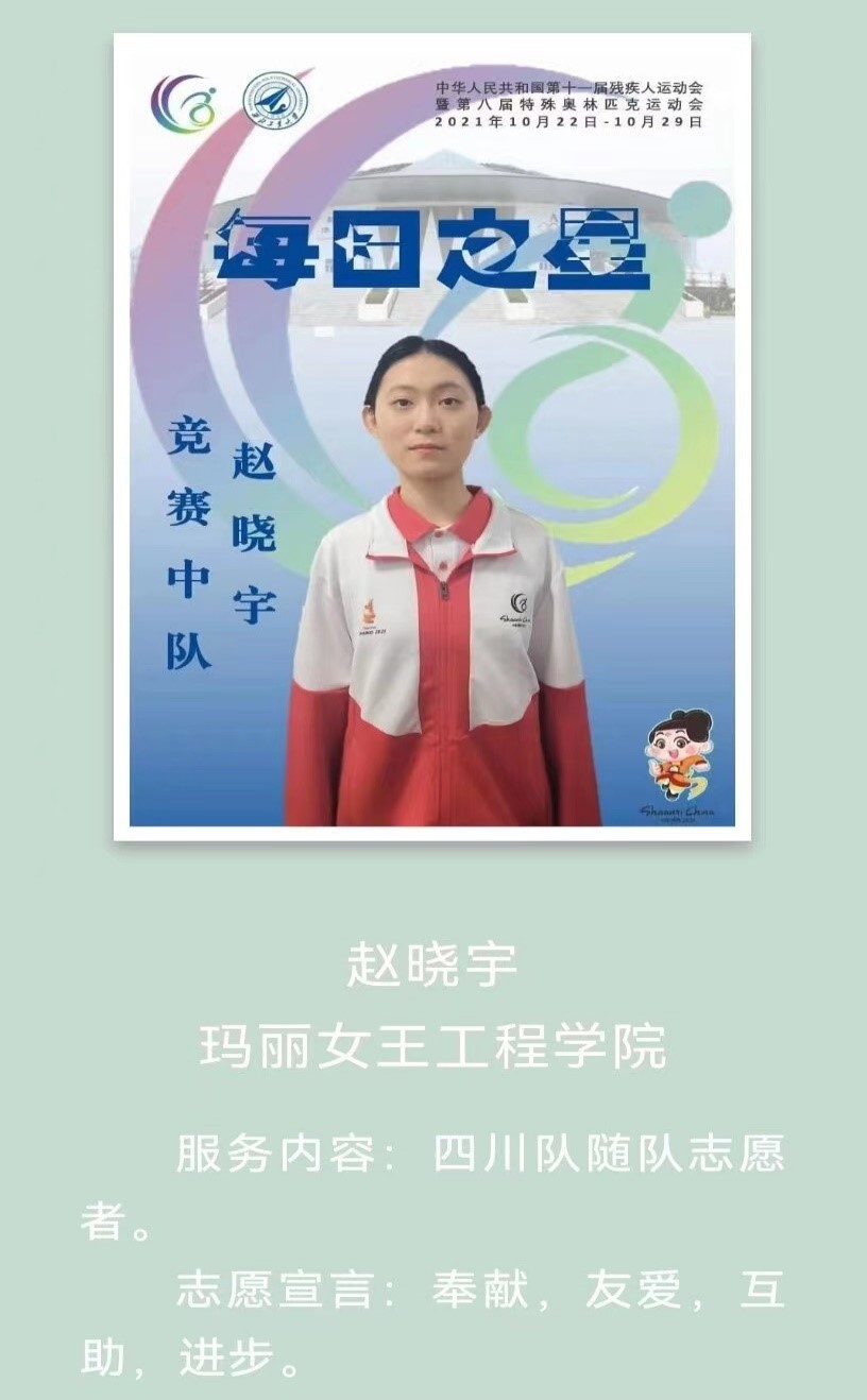 2019级赵晓宇(十四运、残特奥会竞赛中队):
