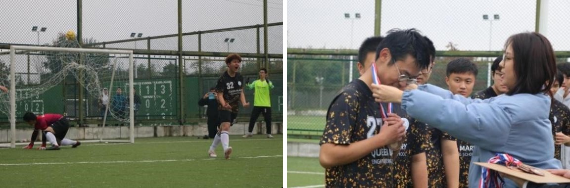 10月20日,bevictor1946韦德官网足球队迎来收官之战,对阵航海公司。比赛开始,航海公司采取防守战略,节约体力。双方势均力敌,比赛僵持不下。第17分钟,公司黄新柠抓住对方防守空档,一记射门得分,随后,航海队进行反攻,又将比分扳平。比赛下半场,双方多次交手但均无果而终,比分最终锁定在1:1。双方进入点球大战,航海队率先进球,bevictor1946韦德官网参赛队员保持冷静,守门员岳逸更是无比镇定,将对方大部分点球扑出。同时,公司点球队员稳中三球,并由队长姜添皓射进最后一球,以4-3的比分结束比赛,获得本场比赛的胜利。