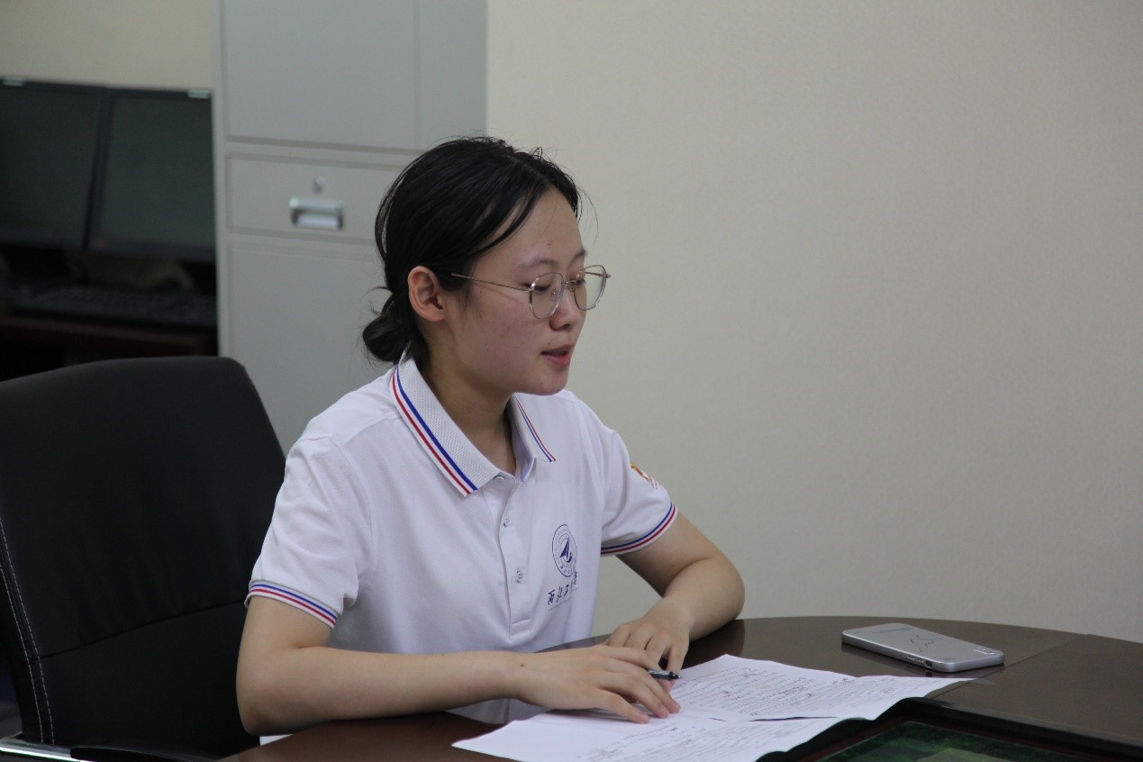 “清源节流,澄澈未来”实践队队长王馨婕进行发言。她代表实践队全体成员向新疆环境保护研究院的大力支持表示感谢,希望通过本次学习实践,能够了解到新疆地区在生态文明建设方面取得的突出成就,深刻领悟党中央“西部大开发战略”和“开发建设与环境保护相协调”方针对改善西北地区人民生活水平的显著影响,体会生态文明建设和国家经济发展的联系,增强时代青年的责任感与使命感,为建设绿水青山贡献工大青年的力量。