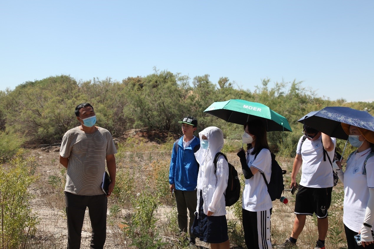 在与现场人员的交流中,实践队员们了解到,在荒芜干旱的恶劣环境下,新疆环境保护研究院的科技工作者们按时采集数据、分析数据并定时对观测设备进行检测维修。最终,这些数据将被用于该地区的生态环境状况研究。